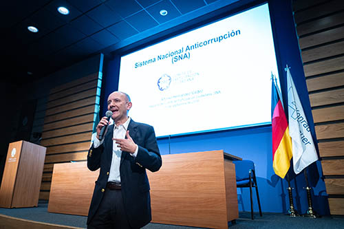 Luego de explicar que en México ocurren cada año "200 millones de actos de pequeña corrupción que cuestan en promedio 165 pesos por evento", el integrante de la USEM repasó las medidas que se han venido tomando a escala gubernamental para fomentar el combate a la corrupción.