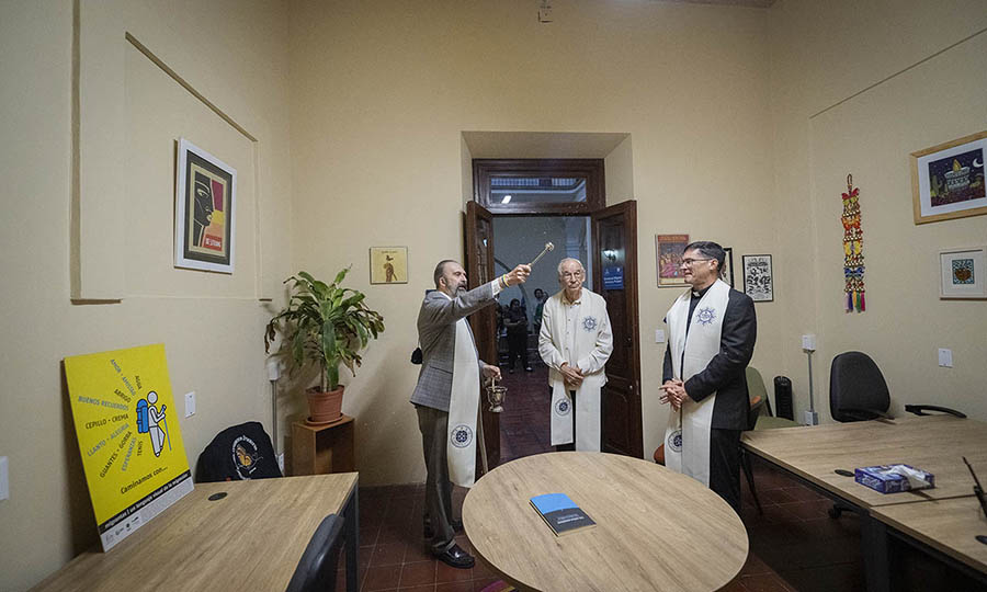 Al finalizar las intervenciones, Zatyrka bendijo el espacio en el que ahora se encuentra la Clínica Jurídica de Migración, en compañía de Rafael Moreno, SJ, y Scott Santarosa, SJ. Con esta ceremonia, la Casa ITESO Madero, que también alberga al Centro Universitario por la Dignidad y la Justicia (CUDJ), quedó establecida como sede del proyecto. Su ubicación, en el corazón de la ciudad (en Madero 836, en la Colonia Americana, a un costado del Templo Expiatorio), representa un punto estratégico que facilitará el acceso a los servicios de asesoría legal, acompañamiento y formación a quienes más lo necesitan.