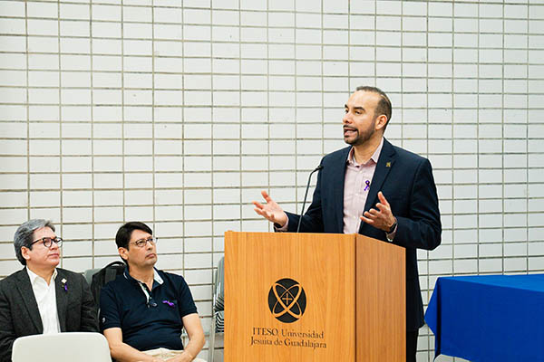 Antes de comenzar la actividad Luis Arriaga, SJ, rector del ITESO, solicitó un minuto de silencio en memoria de Nadia Rodríguez Saro Martínez, estudiante de la Licenciatura en Relaciones Internacionales de la Universidad Iberoamericana (Ibero) León, quien fue asesinada la madrugada del domingo.