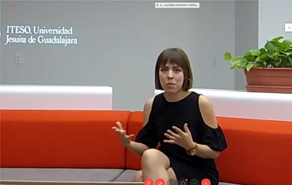 Fabiola Núñez, coordinadora de la licenciatura, abrió la conversación con quienes se sumaron a la actividad en línea, acompañada por Mirelle Mendoza, egresada de este programa académico y quien trabaja en Sarape Social.