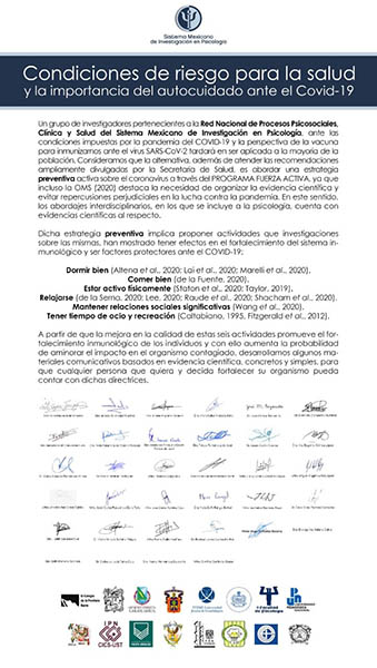 Un grupo de académicos de la Red Nacional de Procesos Psicosociales, Clínica y Salud del Sistema Mexicano de Investigación en Psicología hace una serie de recomendaciones encaminadas a reforzar las medidas de prevención del Covid-19.