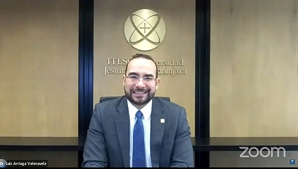 Durante su mensaje de bienvenida, Luis Arriaga, SJ, rector del ITESO, señaló que luego de un año de confinamiento y actividades a distancia "es momento de reflexionar sobre lo que ha sucedido, pero, sobre todo, lo que va a suceder. Debemos ponderar qué de lo que hacíamos vale la pena recuperar y cómo, y de qué actividades debemos prescindir". Si bien, dijo, la pandemia tuvo consecuencias negativas como un descenso en la matrícula de posgrado de muchas universidades, también es cierto que el Covid-19 propició "un salto hacia adelante que de otro modo habría tardado varios años más".